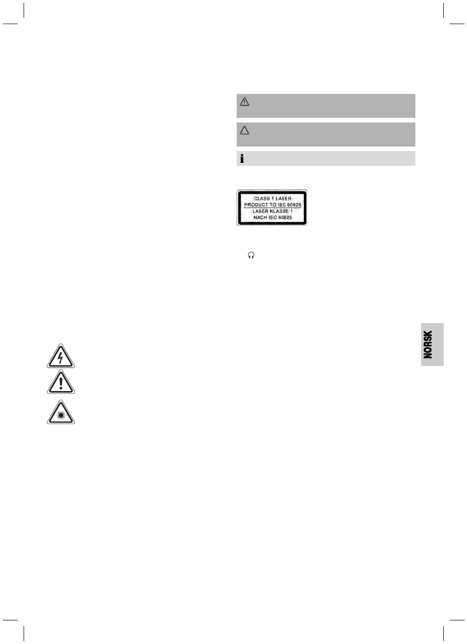Åpne aldri apparathuset. Feilaktige reparasjoner kan medfø-