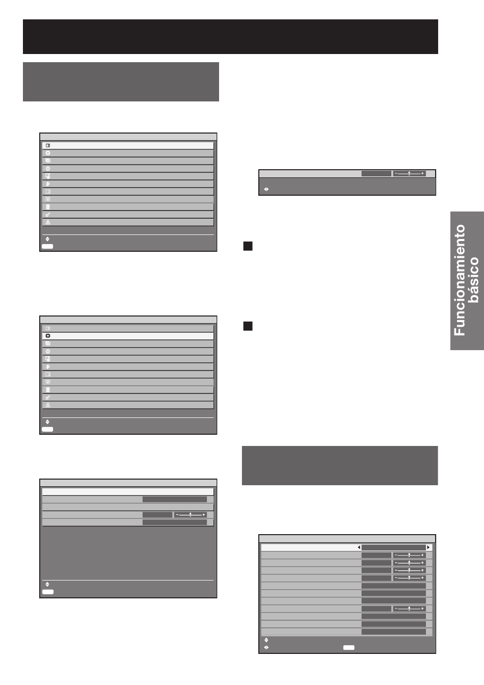 pulsa ◄►, aparece una pantalla de ajuste