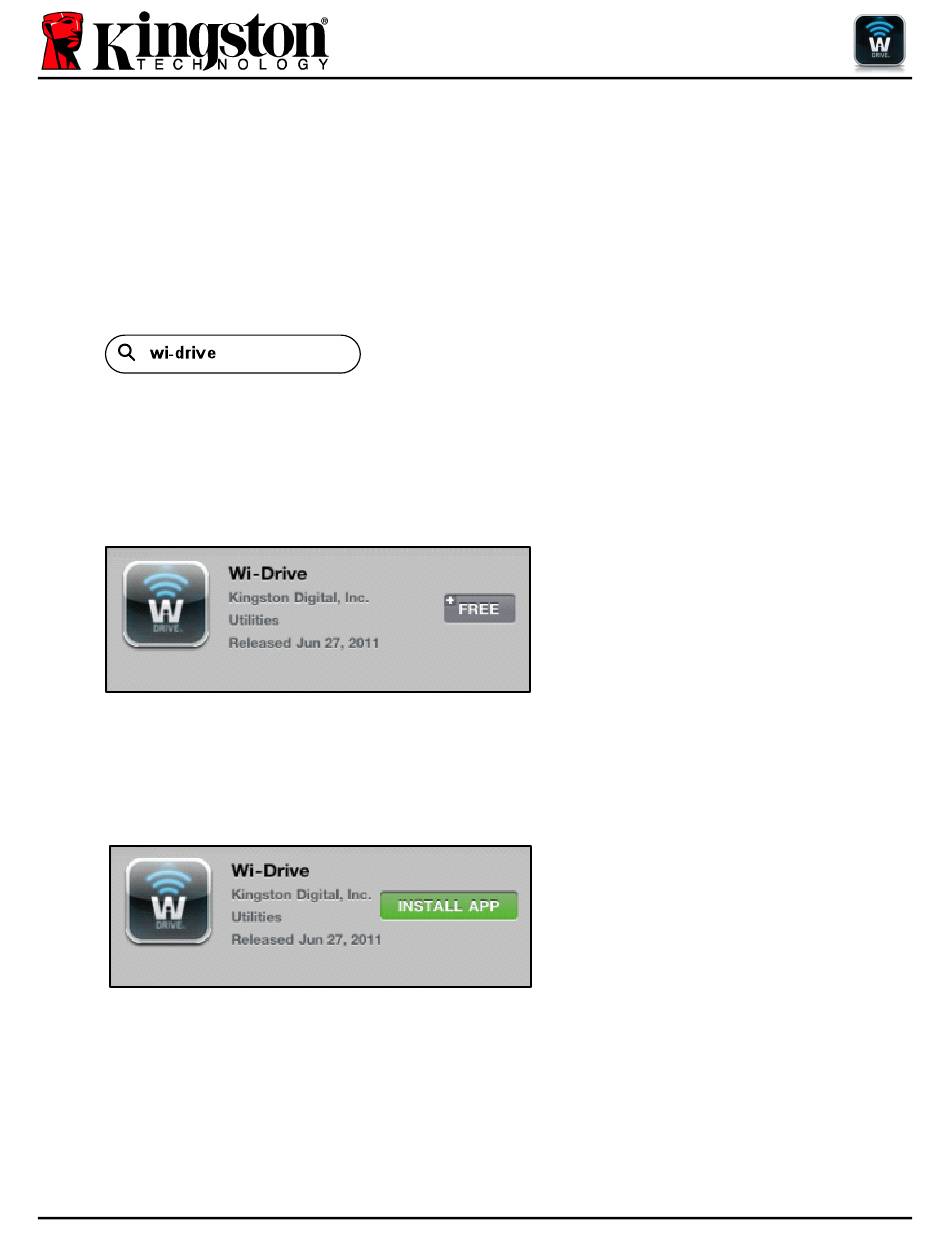 Figure 1.2 – App Wi-Drive par Kingston Digital, "GRATUIT"