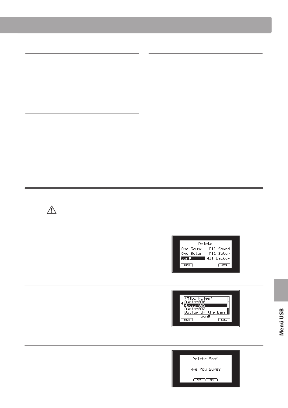Funciones Delete borrarán datos del dispositivo de memoria USB conectado.