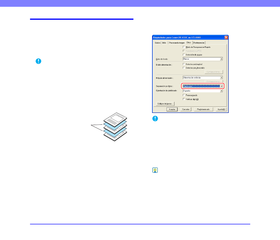 Realice el escaneado con la separación por lotes